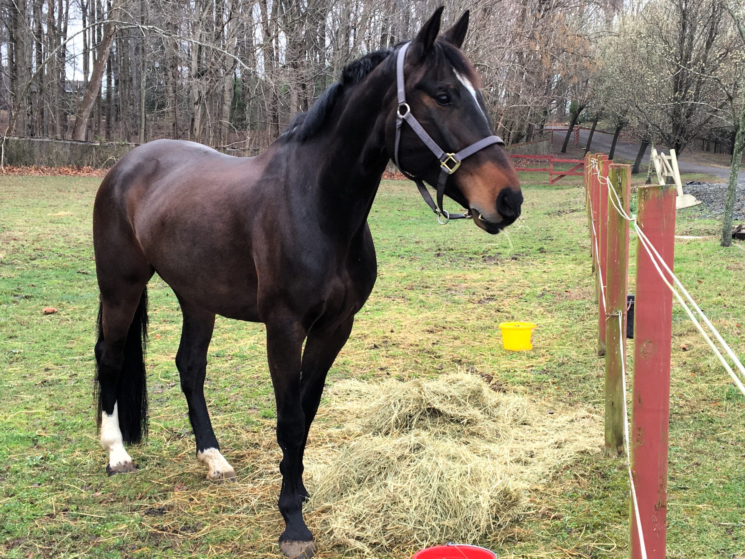 Argo lives outside 24/7, is barefoot, and UTD on everything. She grows a lovely fuzzy winter coat and doesn’t require supplements. She has been turned out with mares only and typically lands in a dominant role, so she would be best suited to a herd that will gladly accept her leadership. She ties, bathes, loads, sprays, and is good for the vet and farrier when given the time she needs. She has also been around her owner’s children and has always been gentle, respectful, and aware of them.