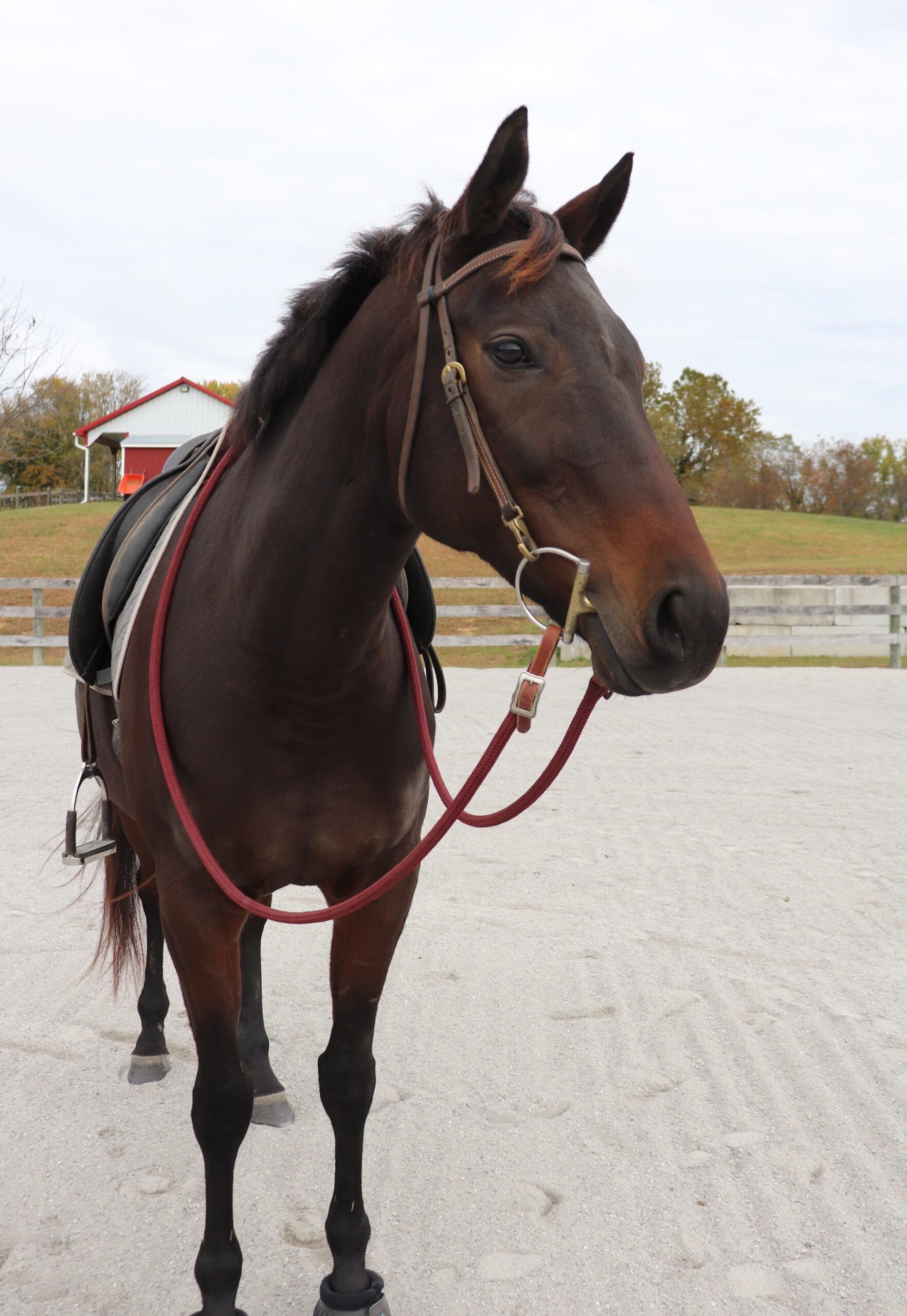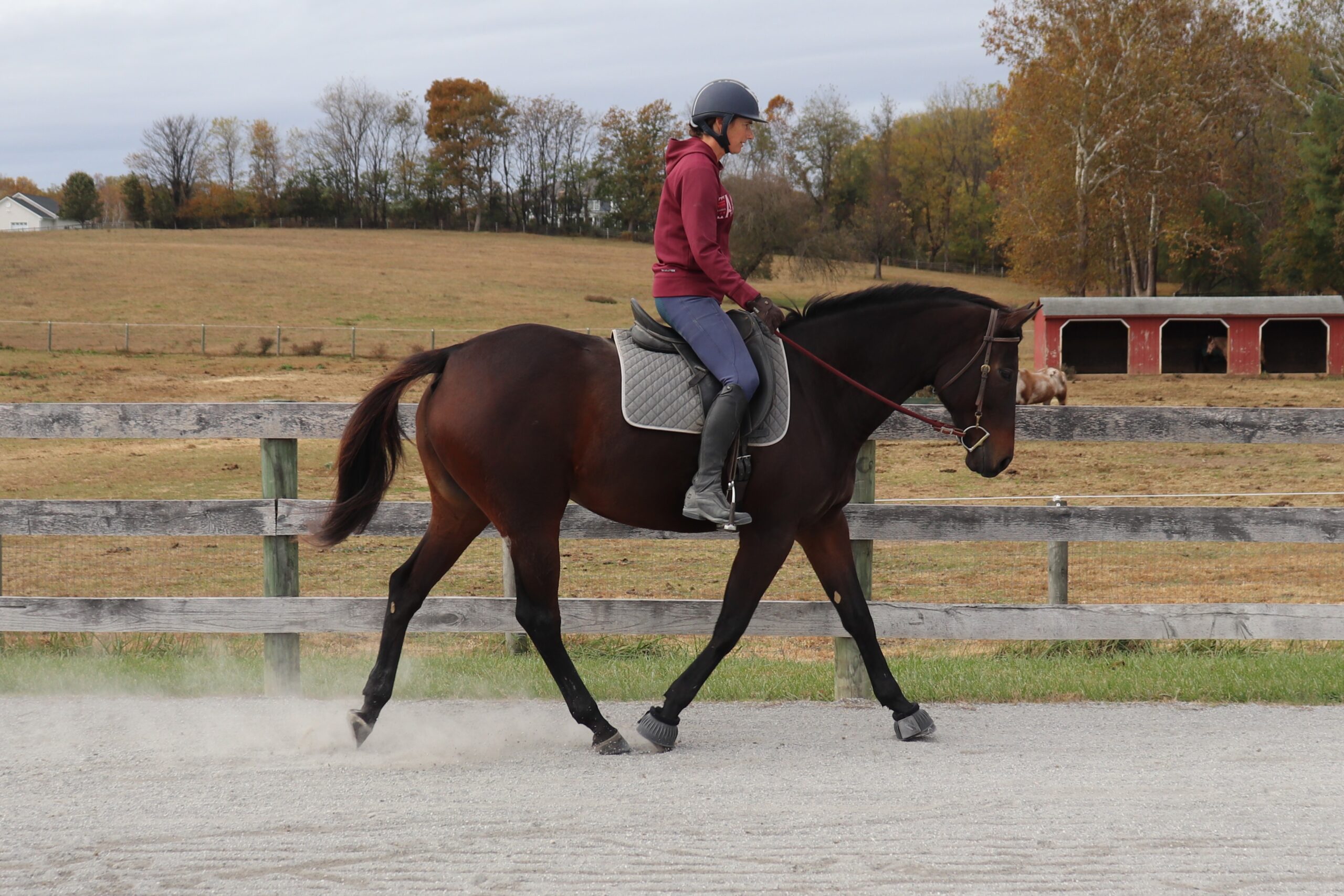 She is currently under saddle walk/trot and we are introducing the canter slowly. She is a bit unbalanced and on the forehand in the canter so with an experienced rider or an intermediate rider with a trainer, her canter should continue to develop nicely. She is lovely to work with walk/trot/canter on the lunge line and long-lines.