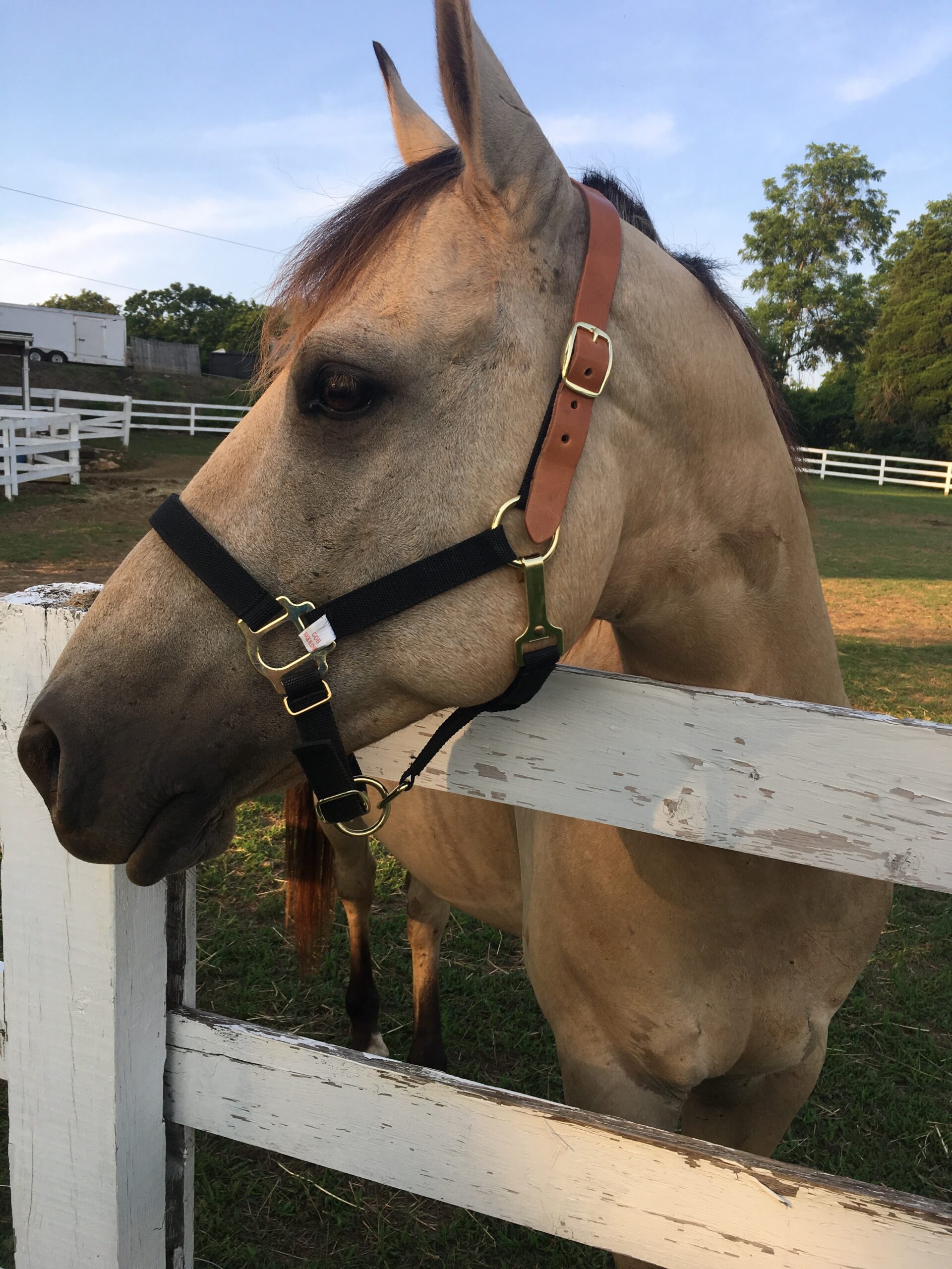 Buck is an easy-keeper, only requiring one meal per day and free-choice forage. To manage his navicular, he receives a SmartPak joint supplement in his feed each day. Buck ties, stalls, load, bathes, sprays and is good for the vet and farrier. He is UTD on all shots, Coggins and deworming, and is due now for a dental check. He currently is housed with one other gelding and gets along well.