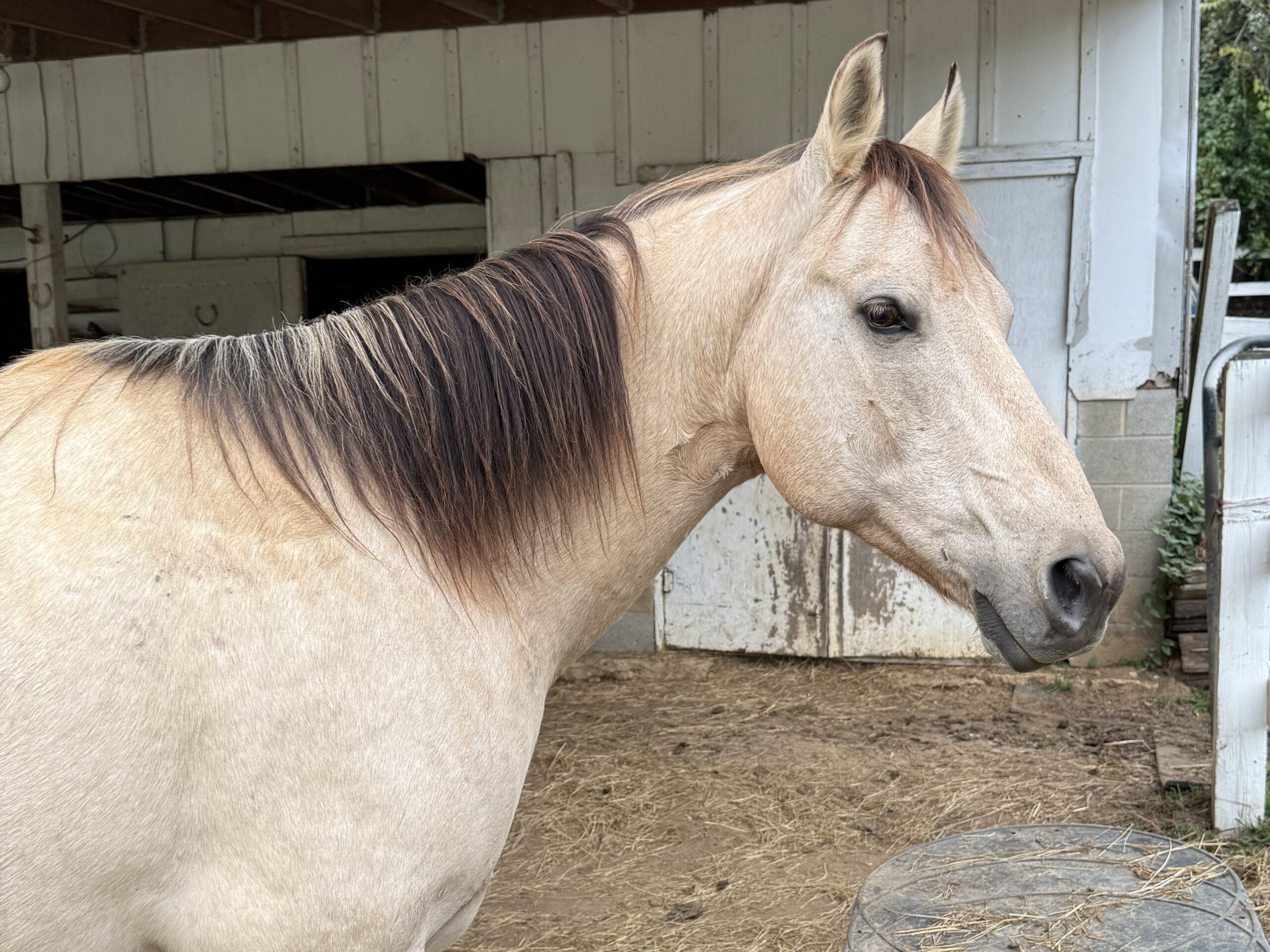 Buck is a beautiful 2010, 15h grade Quarter Horse gelding seeking a home as someone's next riding partner! Due to health complications, his owner is unable to continue caring for Buck and his pal, Smarty Pants, and has sadly made the decision to move him along to someone who can give him the time and attention he deserves. Upon purchasing Buck, it was apparent to his owner that he was treated roughly. He lacked confidence and trust in people, though he tried his heart out to be a good boy. With lots of time, reassurance and patience, his owner was able gain his trust and he turned into a great all-around horse. His owner is hoping to find someone of at least an intermediate experience level both on the ground and under saddle, who can continue to treat him with kindness and patience for the rest of his days.