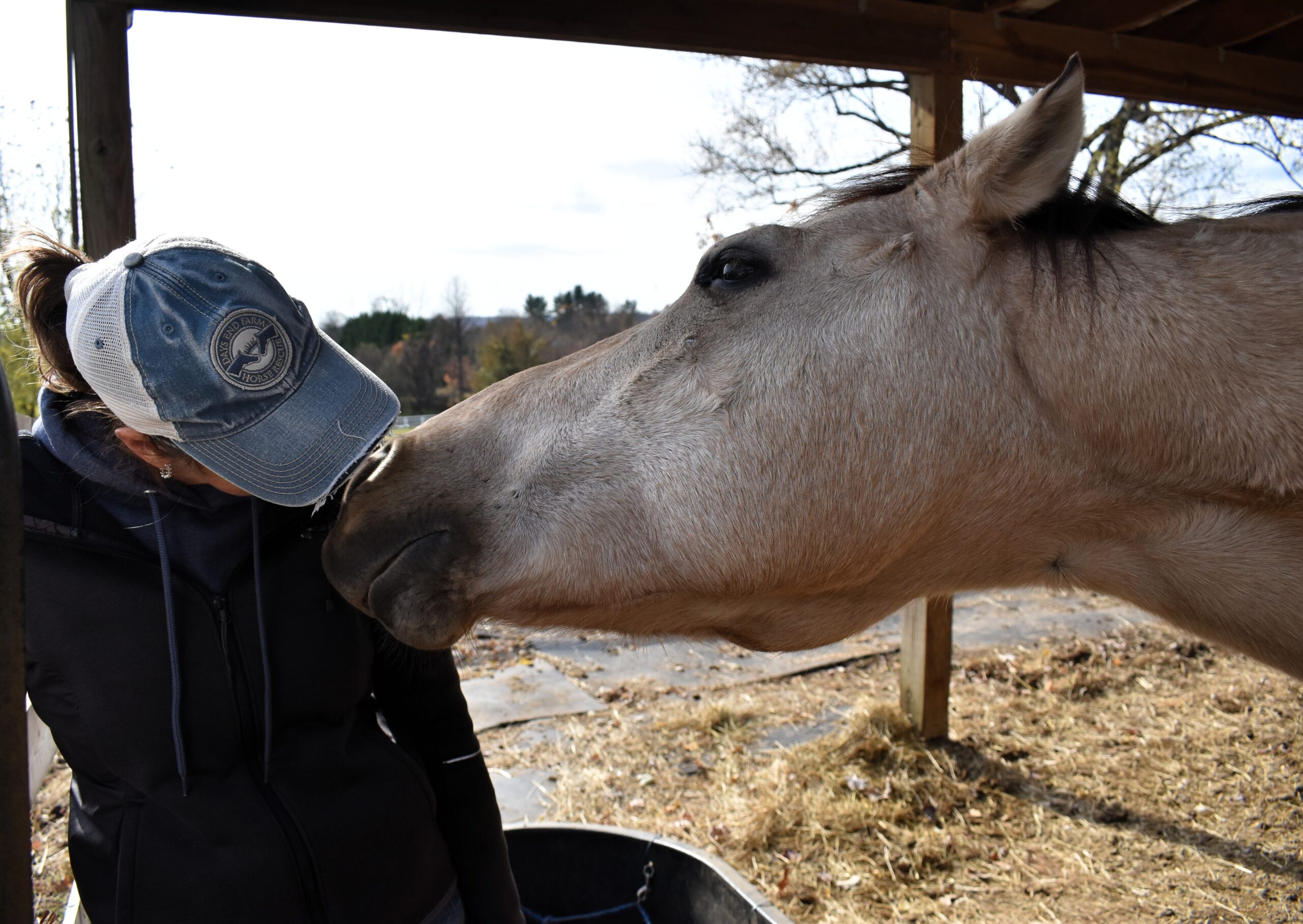 Buck is an easy-keeper, only requiring one meal per day and free-choice forage. To manage his navicular, he receives a SmartPak joint supplement in his feed each day. Buck ties, stalls, load, bathes, sprays and is good for the vet and farrier. He is UTD on all shots, Coggins and deworming, and is due now for a dental check and farrier. He has been housed with gelding horses, ponies and a mini without issue.